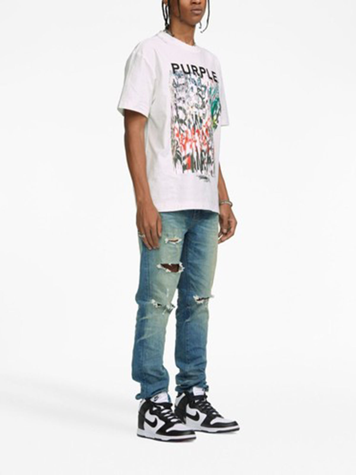This short-sleeved tee is a premium green jersey knit cut from 100% cotton. This heavyweight style is faded throughout and features contrast Purple Brand logo block lettering across the chest. It’s tailored to a relaxed fit for elevated comfort and comes finished with a classic crewneck collar.